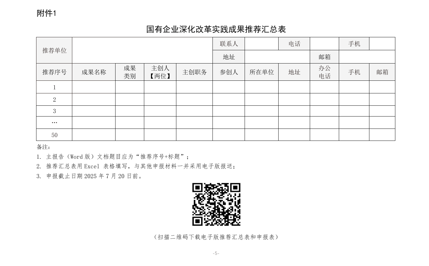 (掃碼下載2025年國有企業(yè)深化改革實踐成果推薦活動通知、推薦匯總表、申報表) 附件1
