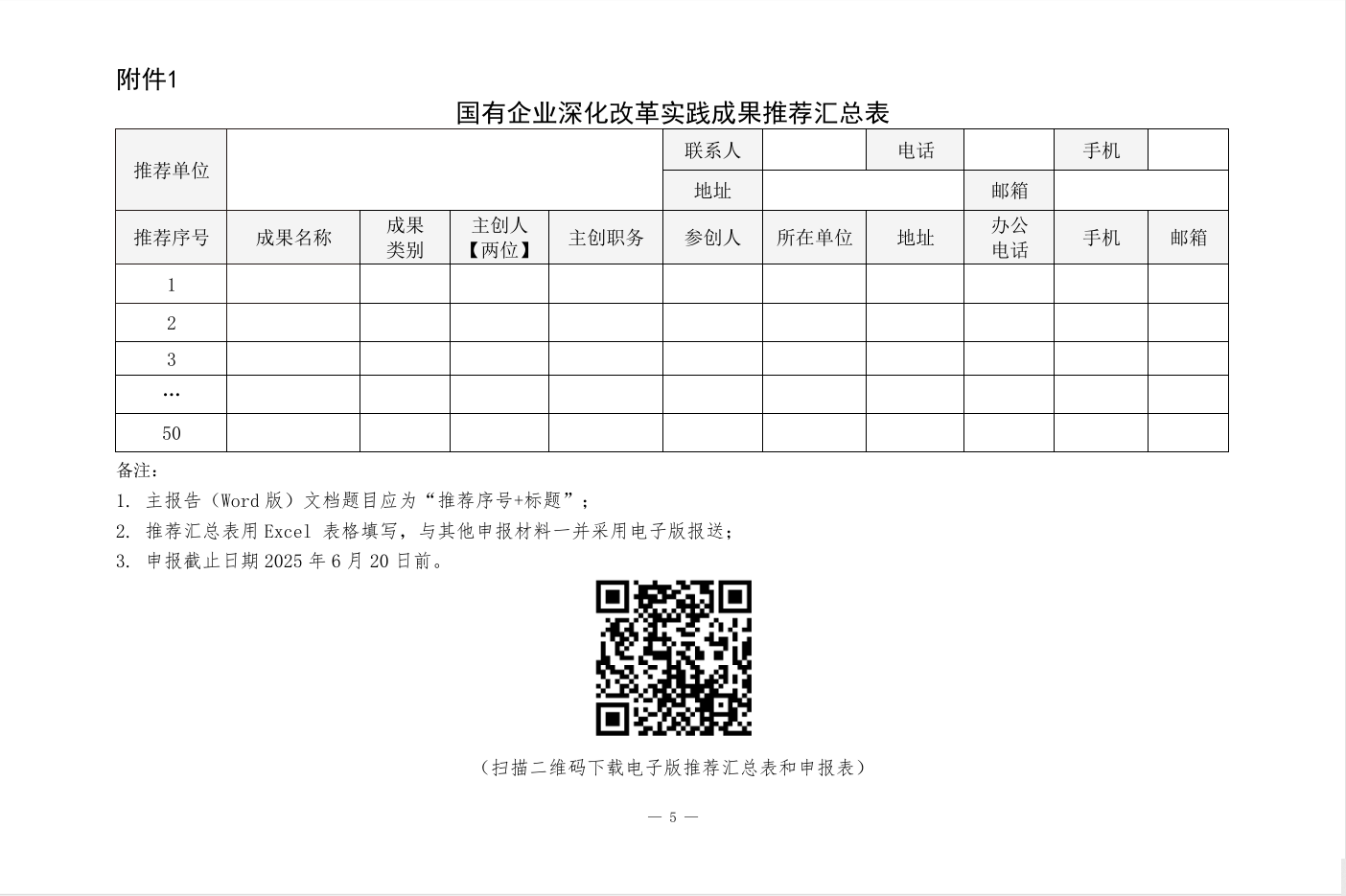 (掃碼下載2025年國有企業(yè)深化改革實(shí)踐成果推薦活動(dòng)通知、推薦匯總表、申報(bào)表) 附件1